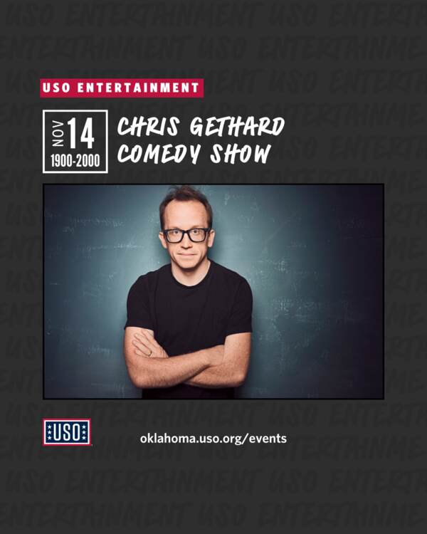 USO is hosting Chris Gethard for a comedy show November 14, 2025 at the Fort Sill Patriot Club! The show starts at 7:00 p.m.. It is free to attend! Ages 18+ No ticket required.