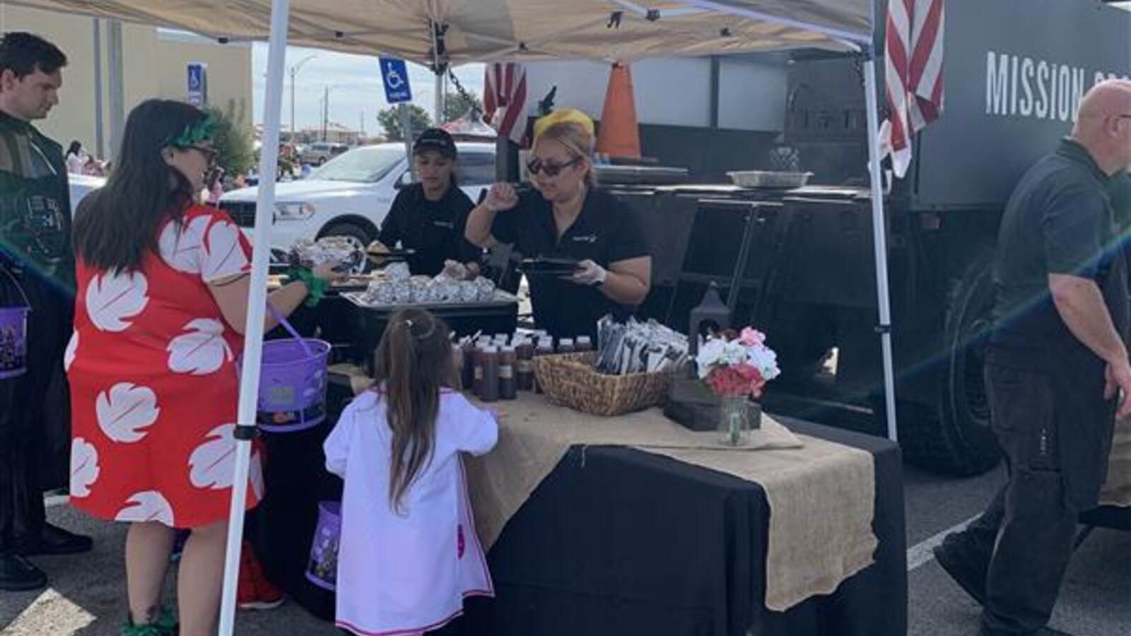 October 16, 2025. On a beautiful October day, the USO’s annual Fall Fest gave 800 service members and families two hours of seasonal festivities. Kids in costumes and their parents enjoyed truck-or-treat, outdoor games, indoor crafts, military displays, and touch-a-truck. Attendees enjoyed BBQ sliders compliments of Mission BBQ and chili and cornbread served by USO volunteers.