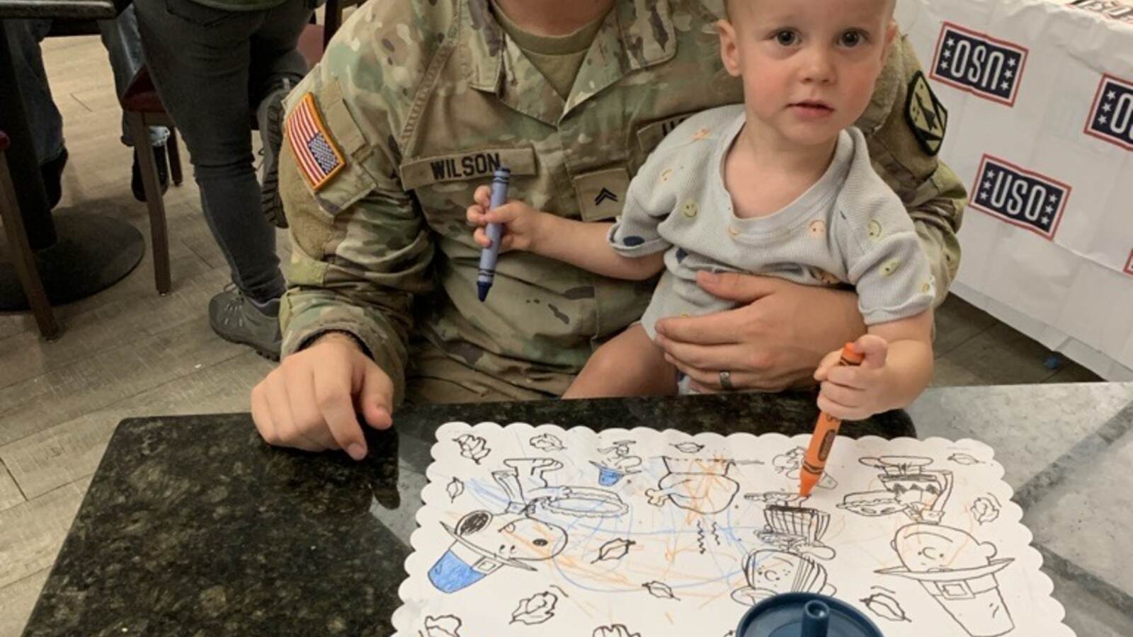U.S. Army Corporal Wilson enjoys chili and coloring with his son.
